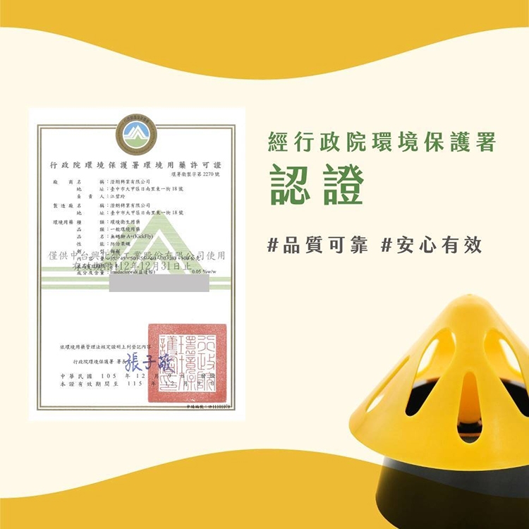 - 合法環境用藥應有環境用藥許可證字號,可至環保署化學局「環境用藥許可證疾病媒防治業網路查詢系統」(https://mdc.epa.gov.tw/PublicInfo/)查詢。