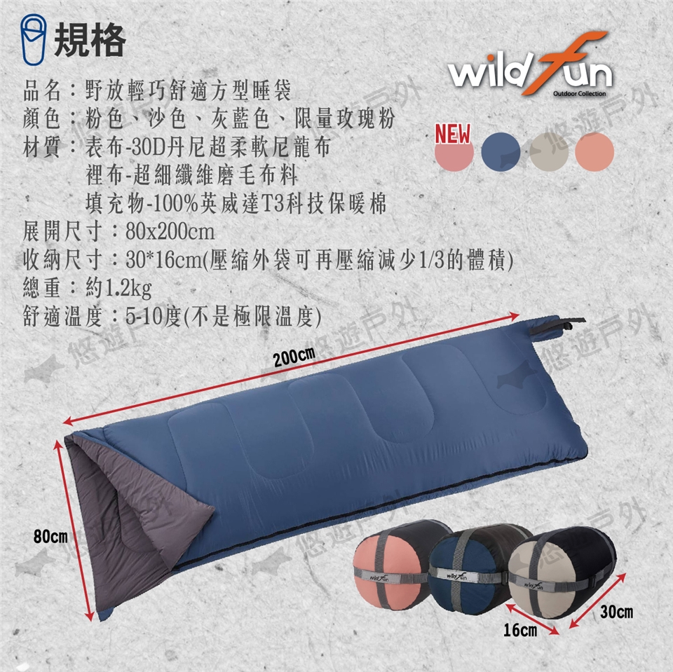 【悠遊戶外】Wildfun 野放 輕巧方型睡袋