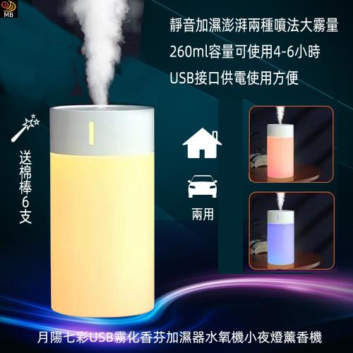月陽送棉棒6支車用家用七彩USB霧化香芬加濕器水氧機小夜燈薰香機(MBH2)