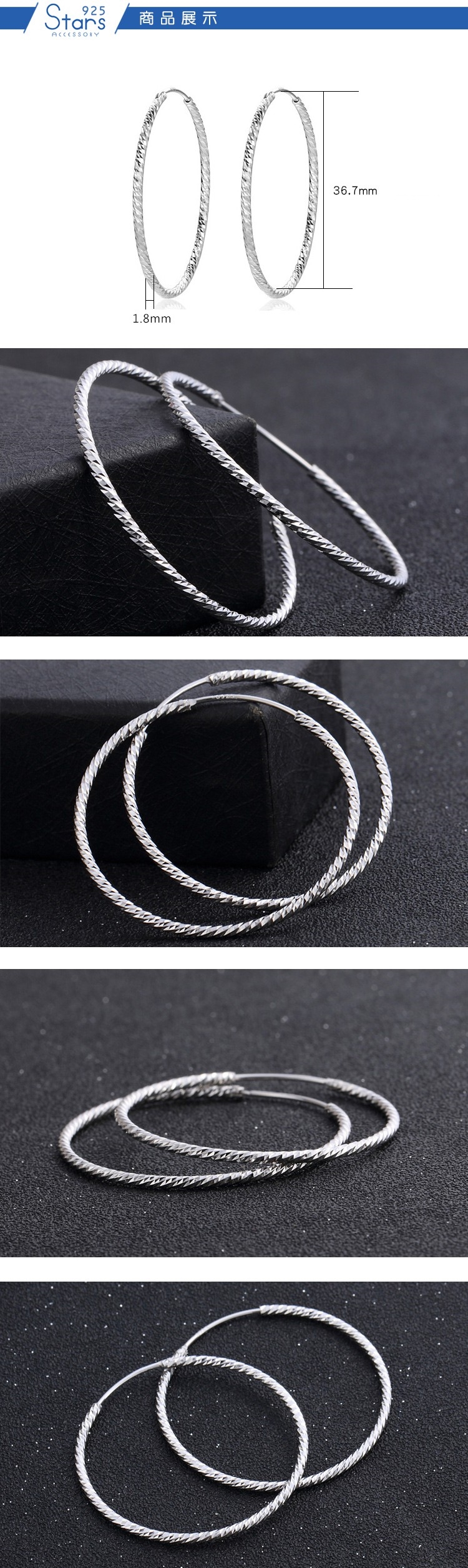 【925 STARS】純銀925素銀復古潮流螺紋大圈圈造型耳環 造型耳環