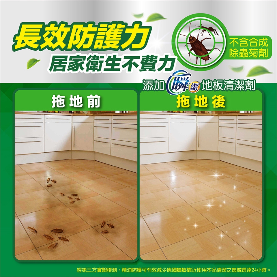 商品詳細介紹 99.9%除菌:有效除去大腸桿菌、金黃色葡萄球菌,確保居家環境衛生。長效防護:不含合成除蟲菊劑,添加植萃精油防護,減少蟑螂螞蟻靠近。草本清香:添加植萃香氛精華,使用清爽不刺鼻,常保地板舒適清香。 體驗說明 不可體驗 使用方法說明 無 注意事項 無
