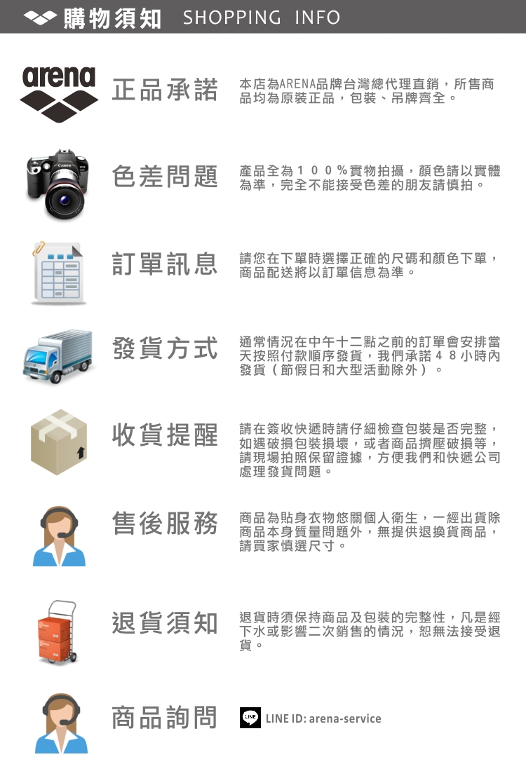 本店為ARENA品牌台灣總代理直銷,所售商品均為原裝正品,包裝、吊牌齊全。