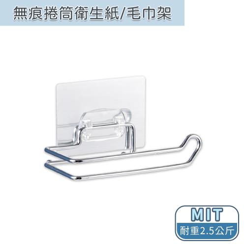 台灣製 304不鏽鋼無痕壁貼-捲筒衛生紙/毛巾架