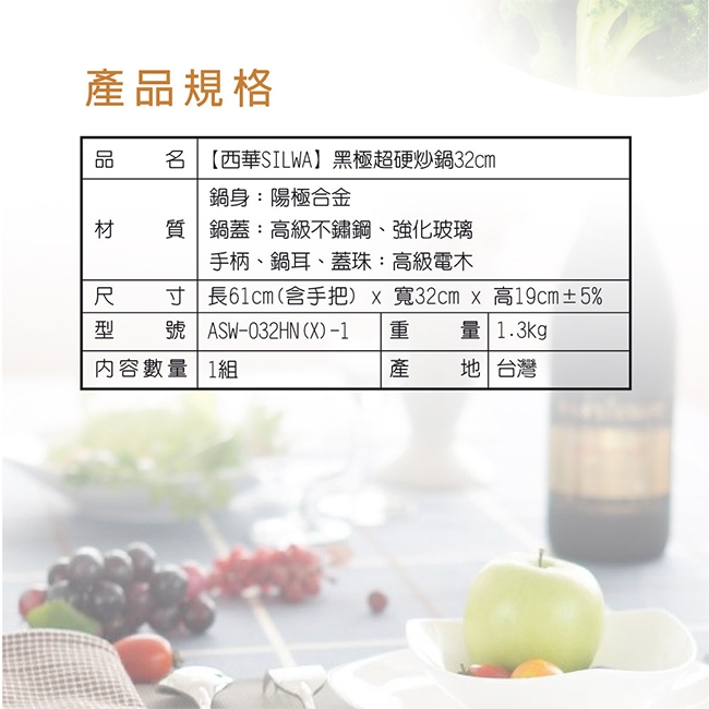 ◆因特殊陽極電解處理,本產品不建議烹煮鹼性類食材或使用鹼性物品清洗,易造成退電還原,影響外觀,還請多加注意。