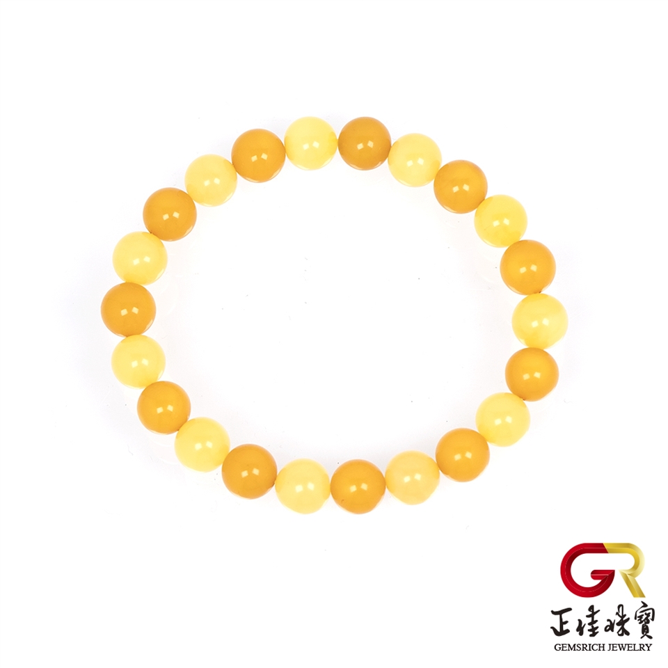 主角:蜜蠟琥珀 陽橙白金滿蜜 7.8-8.2mm 蜜蠟多寶手珠|日本彈力繩