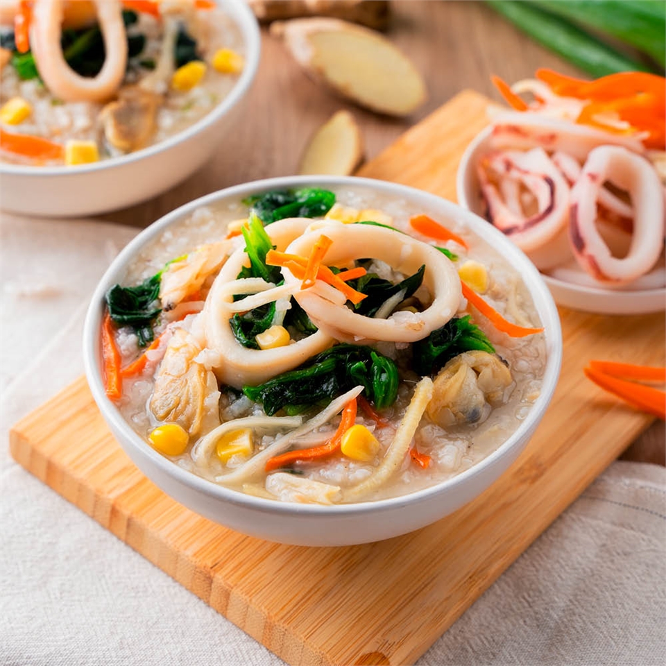 採用台產本土米以及被譽為超級穀物的"紅藜麥"為基底,加入高湯、蒜酥及薑絲慢火熬煮,配上鮮味十足、Q彈的魷魚圈及海瓜子,灑上白胡椒增添微辣層次感,滿嘴鮮香滑順,暖呼呼溫暖身心~