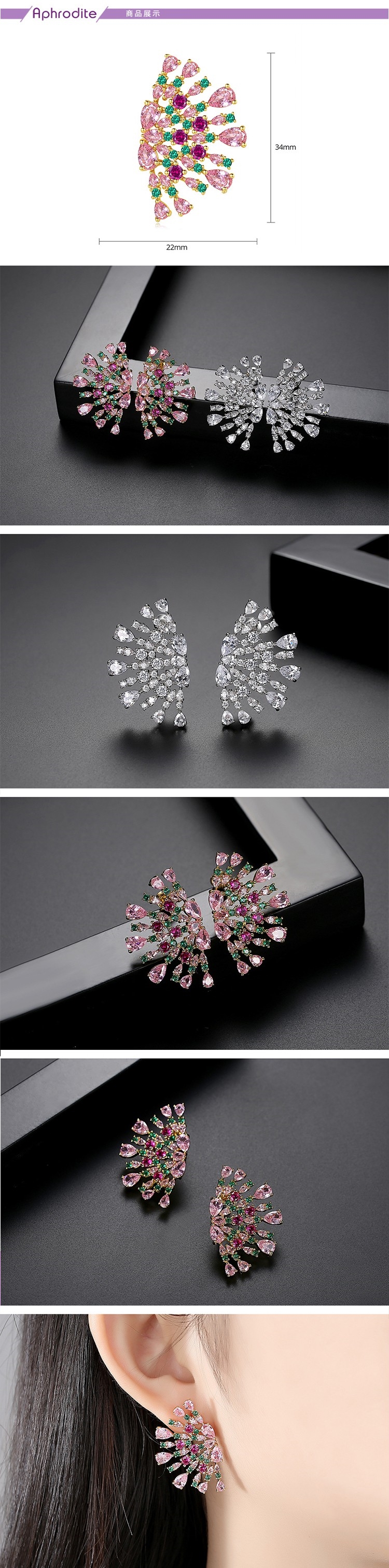 【愛芙晶鑽】閃耀水晶鋯石美鑽孔雀開屏造型耳環 造型耳環 美鑽耳環 (2款任選)