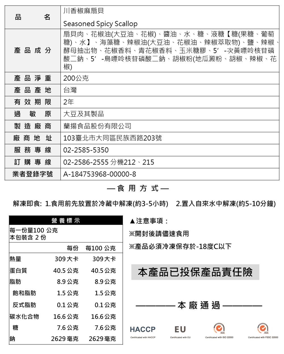 特選鮮嫩扇貝肉、粒粒皆Q彈,肉質滑嫩鮮甜,加上精選辣椒萃取而成的辣椒油與大紅袍花椒製成之花椒油,扇貝肉本身含豐富蛋白質及多種礦物質,深受大眾歡迎,麻辣香醇濃郁,讓人吮指回味之爽口開胃料理。