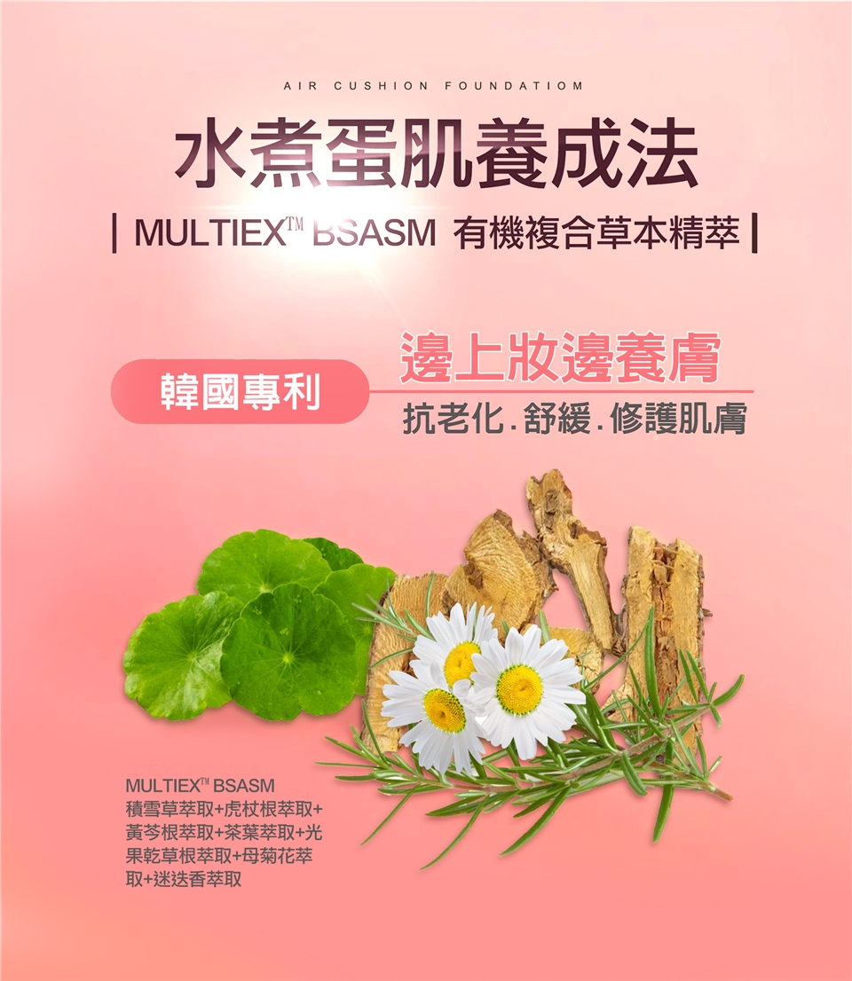 璀璨粉嫩光氣墊粉餅:使用氣墊粉撲沾取後輕拍在臉上。