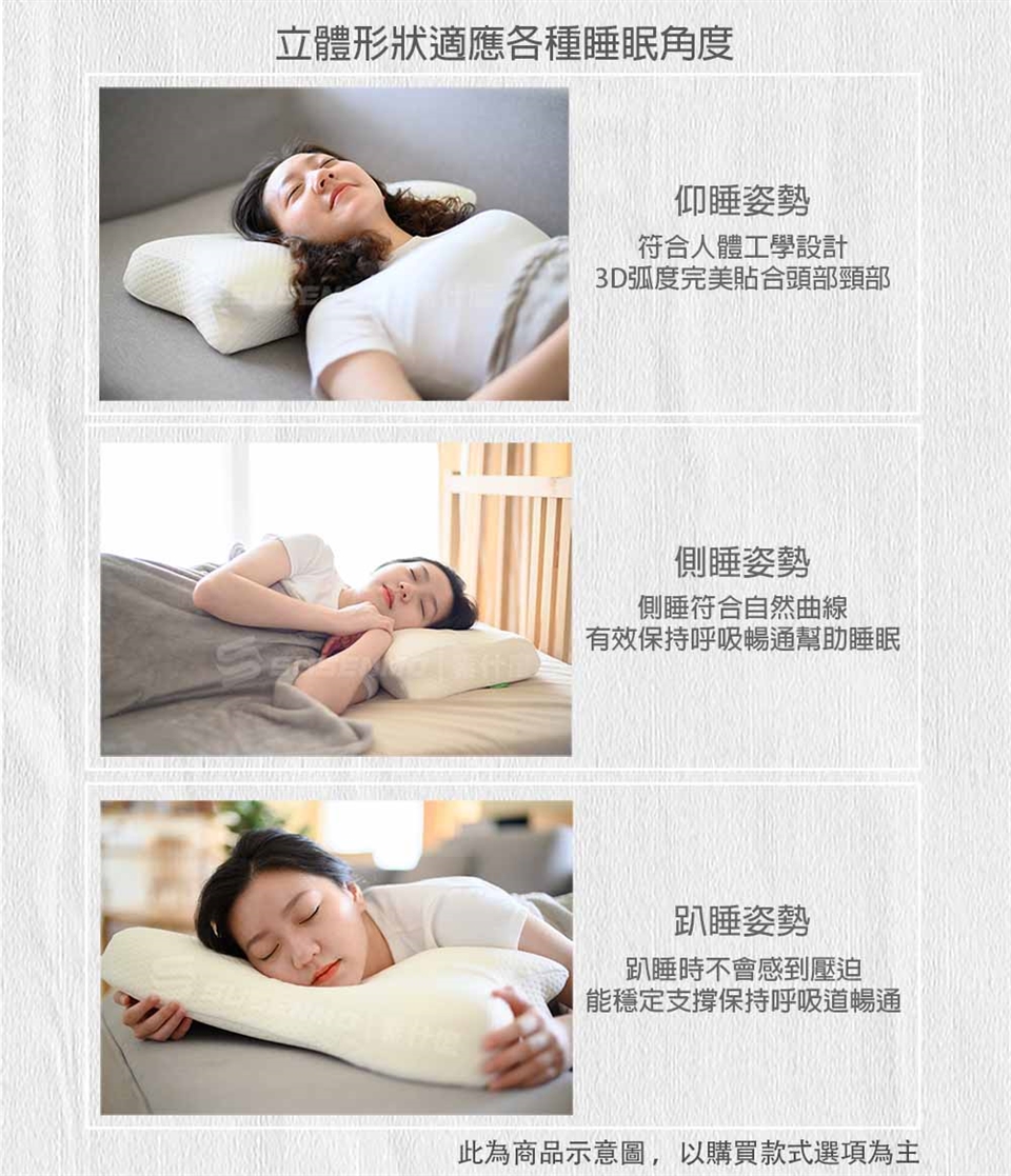 立體形狀適應各種睡眠翻身角度,能穩定支撐,