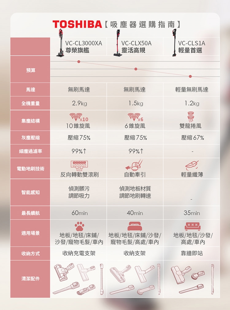 ◆獨家十錐旋風集塵,過濾99%以上灰塵、花粉,避免堵塞,吸力持久強勁。