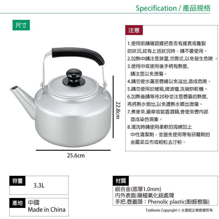 手把.壺蓋頭:Phenolic plastic(酚醛樹脂)