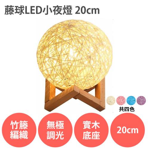 藤球LED小夜燈 【20cm 實木架 可調明亮度】藤球燈 竹籐編織 USB插電 居家 臥室 床頭燈 民宿燈 裝飾燈