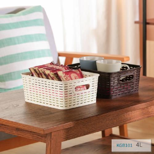 ◎ 柔和典雅色系,側面仿藤藝透孔設計,手把設計,便於拿取;亦可堆疊收納,有五種不同大小之產品,可供選擇,有簡約米、雅致咖啡色,可供挑選