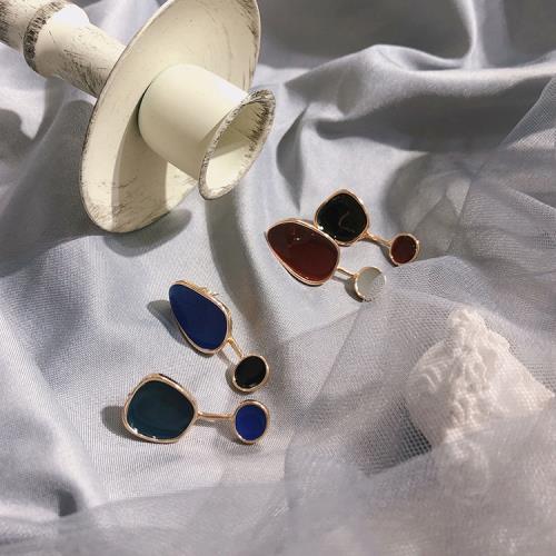 《Caroline》韓國熱賣925銀針個性不對稱撞色幾何耳環73056