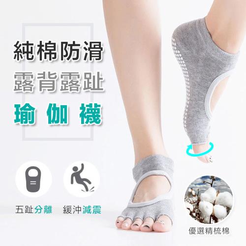 純棉保暖款防滑露背瑜伽襪(2入組)