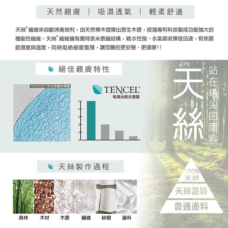 ★天絲是最天然衛生的纖維,排濕性佳透氣姓好,使用時乾爽舒適,不會有悶熱感。