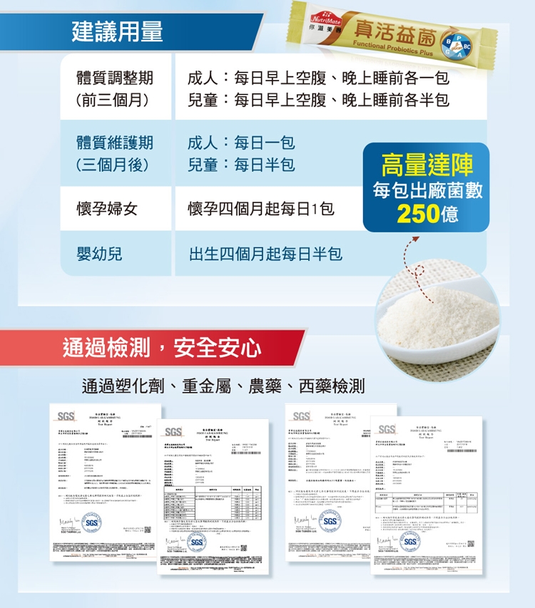 每日食用1~2包,6歲以下兒童減半食用。可直接食用或加於飲料中一起食用