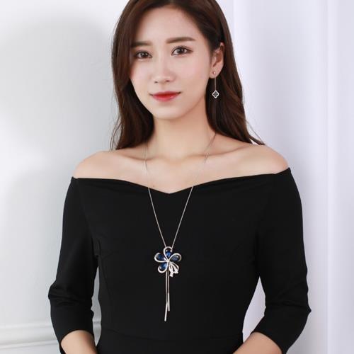 【Emi艾迷】溫柔氣息靛藍花瓣搖曳鋯石微鑲長項鍊毛衣鍊