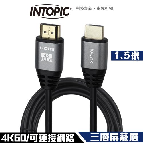 Intopic 廣鼎 HD-02 HDMI 2.0 4K60 三層屏蔽 鋁合金外殼 影音傳輸線 1.5米 支援網路功能