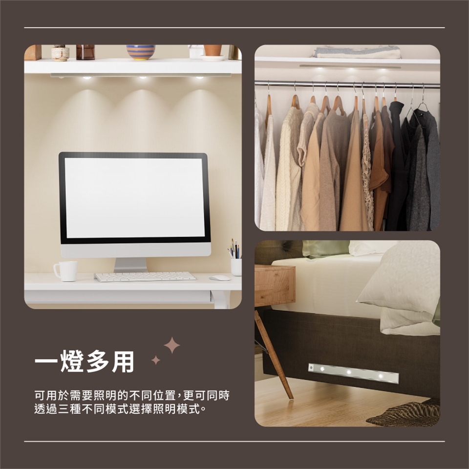 ◇ 一燈多用:家中的玄關、廚房、電視牆或洗手台等地,安裝方便簡單,隨黏即用。