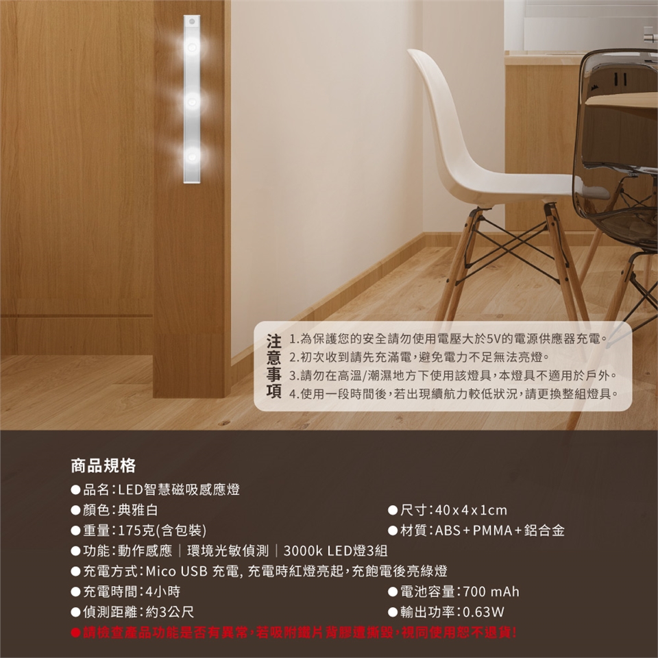 LED智慧磁吸感應燈 產品規格