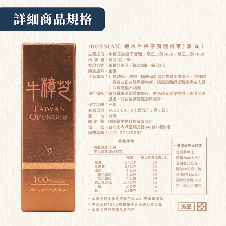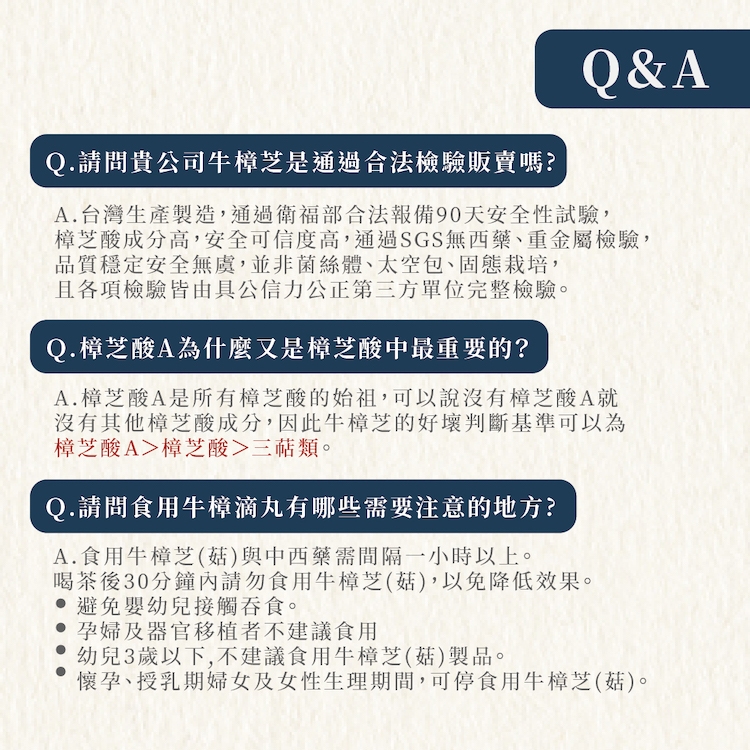 *本產品經牛樟芝原料已完成90天無毒實驗