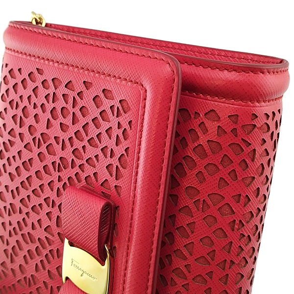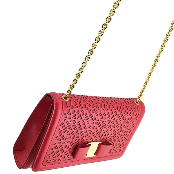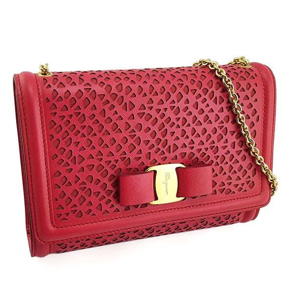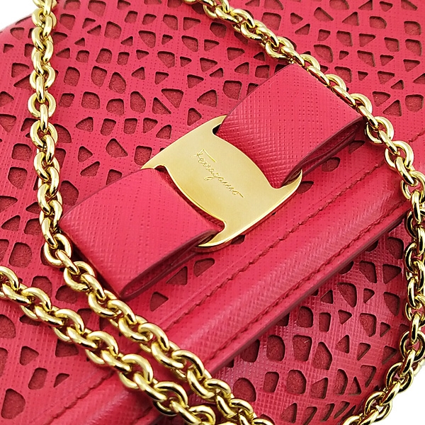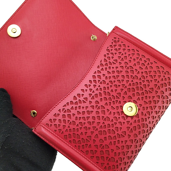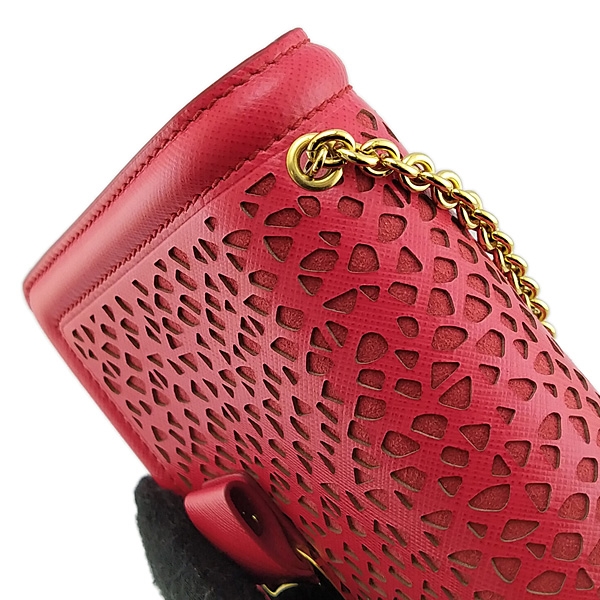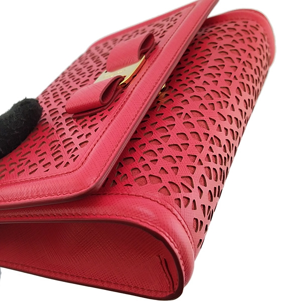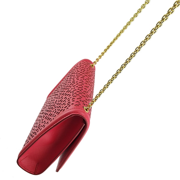 - 材質:紅色雕花牛皮 + 金色金屬蝴蝶結 + 金鍊