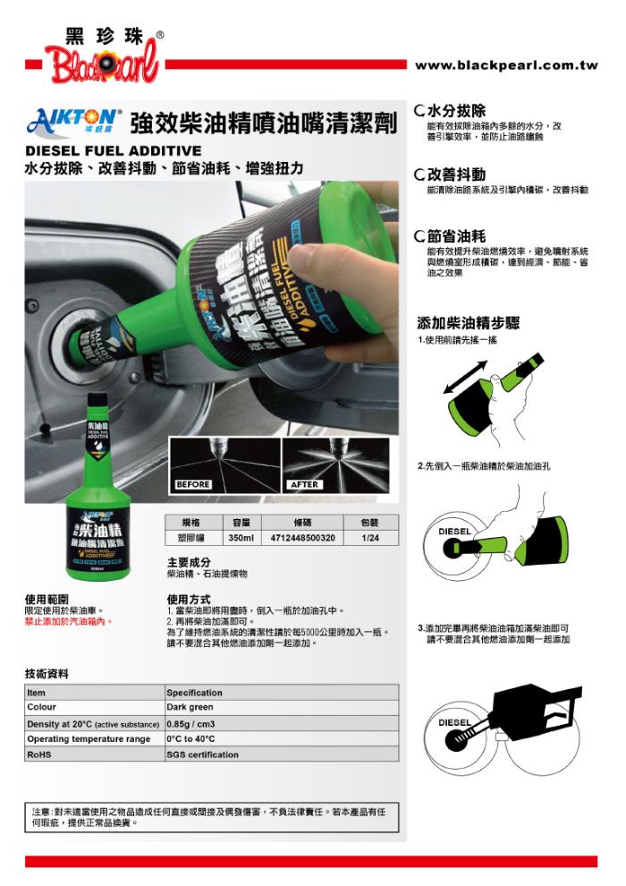 1.當柴油即將用盡時,倒入一瓶於加油孔中,然後將柴油加滿即可。