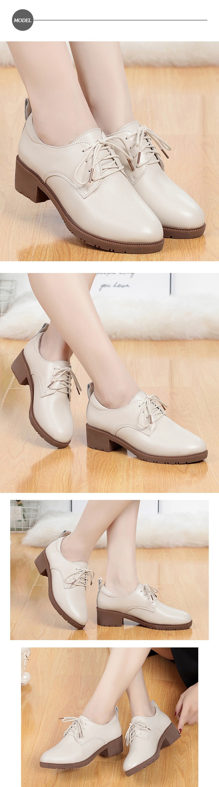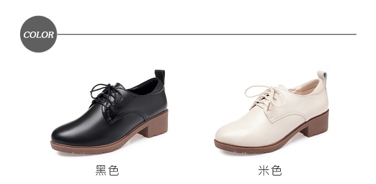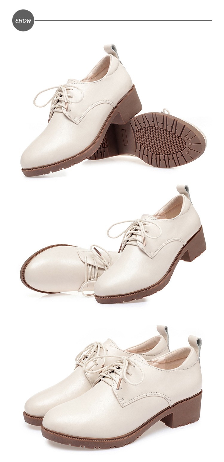 【MOM】牛津鞋 粗跟牛津鞋/真皮舒適軟底繫帶粗跟牛津鞋 米