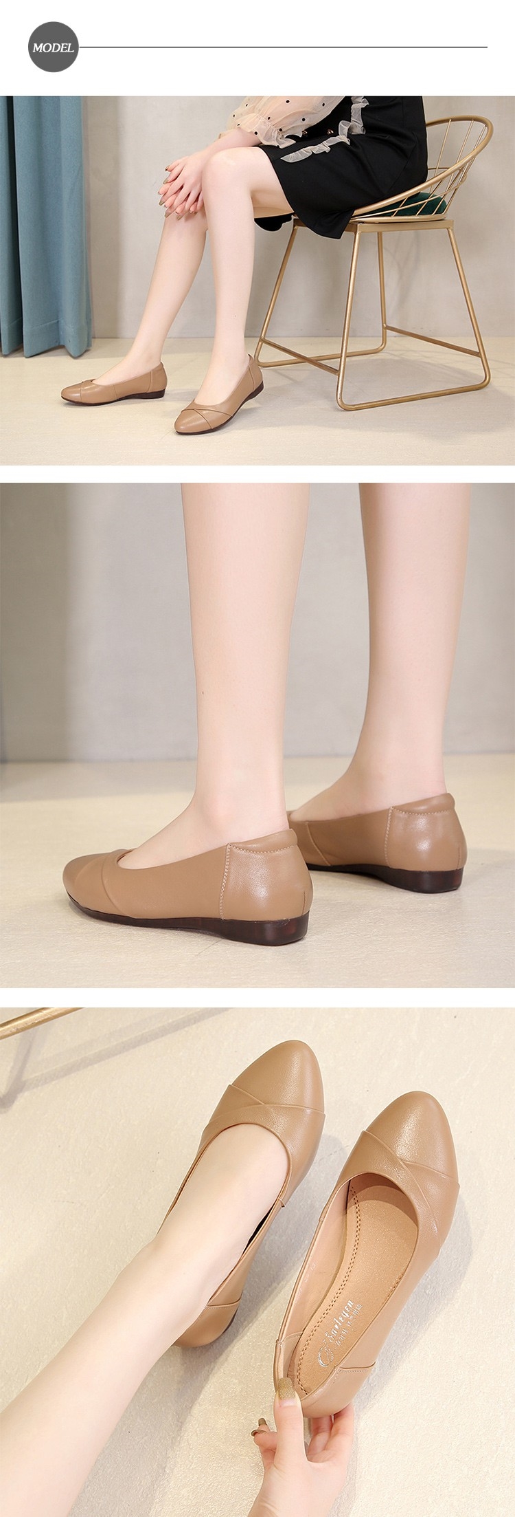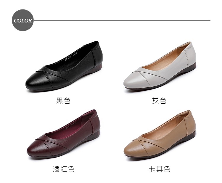 【MOM】平底鞋 尖頭平底鞋/真皮小尖頭軟底折線設計平底鞋 卡其