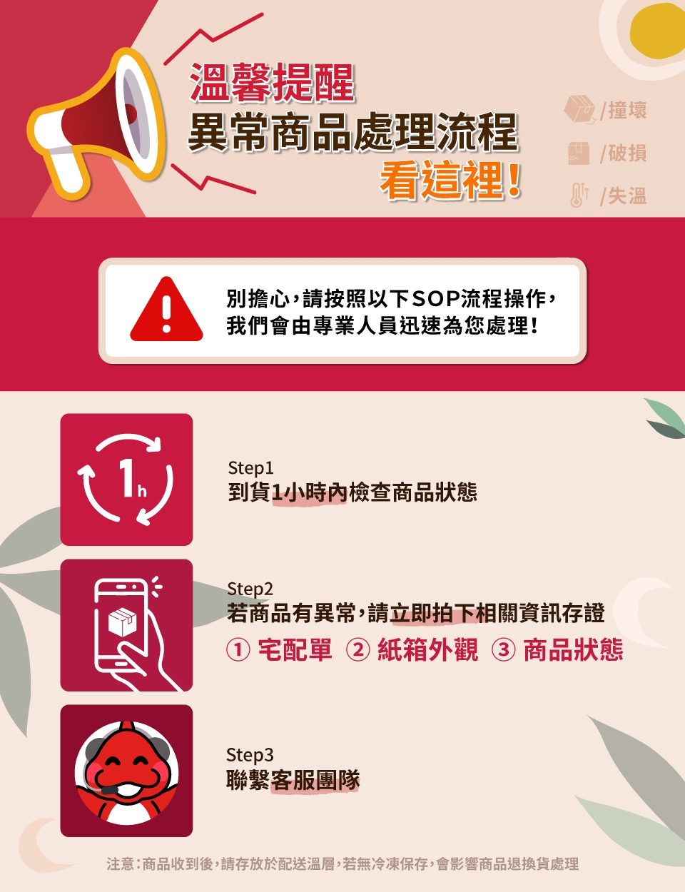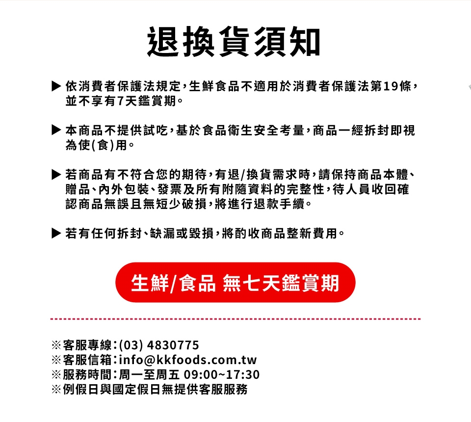 ※依消費者保護法規定,生鮮食品不適用於消費者保護法第19條,並不享有7天鑑賞期。