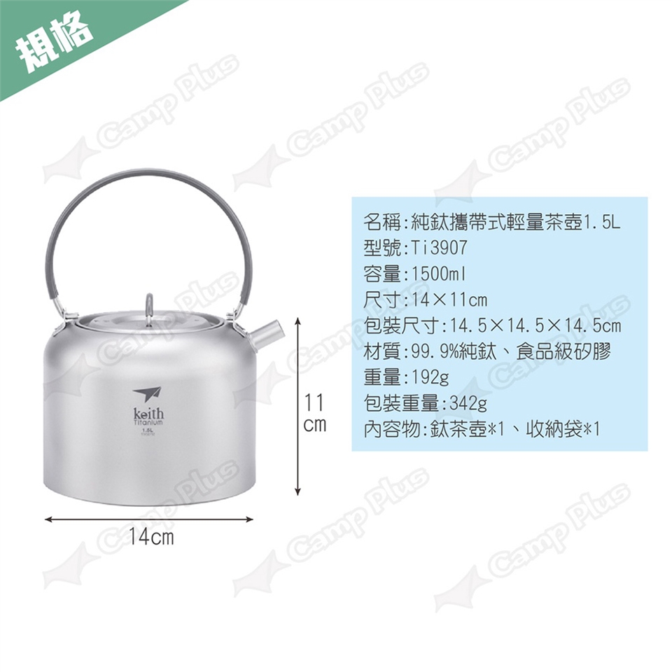 【悠遊戶外】Keith 鎧斯 純鈦攜帶式輕量茶壺1.5L