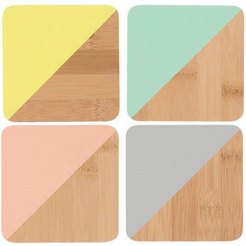 【DANICA】竹製雙色杯墊4入(黃綠粉灰)