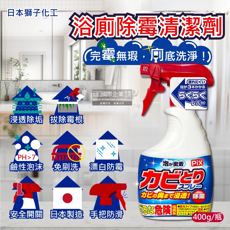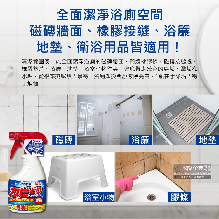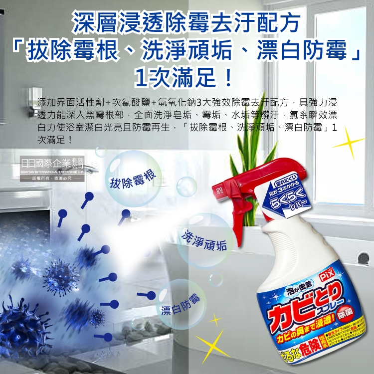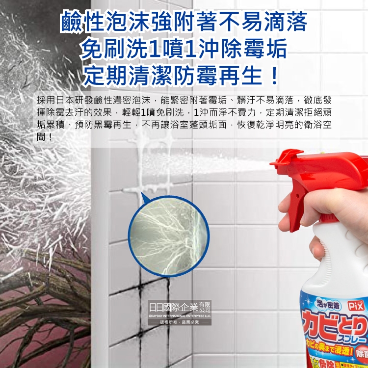 ●品名:PIX衛浴免刷洗鹼性除霉濃密泡沫噴霧清潔劑