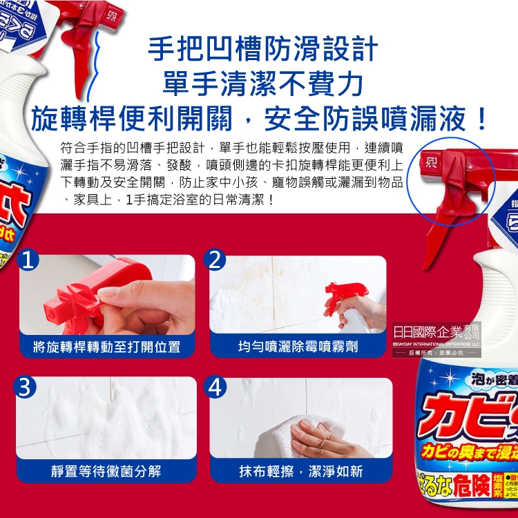 ●用途:用於浴廁牆面磁磚、橡膠接縫處、地墊、浴簾等清潔除霉。