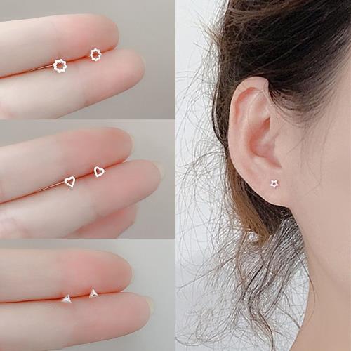 【Emi艾迷】小巧迷你造型925銀針 養耳洞 星星愛心三角耳環