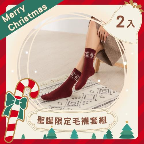 【DR.WOW】 毛襪貝柔保暖止滑襪 保暖襪 聖誕毛襪 -二入組