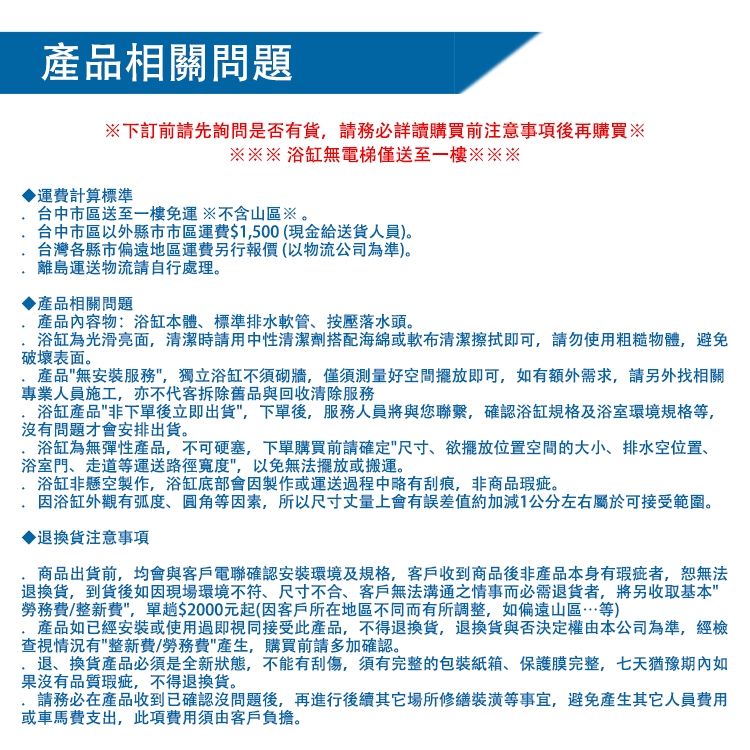 ◎本產品僅送至一樓,恕不含舊品回收處理與安裝服務。