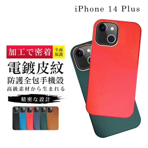 IPhone 14 PLUS 手機殼 6.7吋 加硬不軟爛高質感皮紋背板手機保護殼保護套
