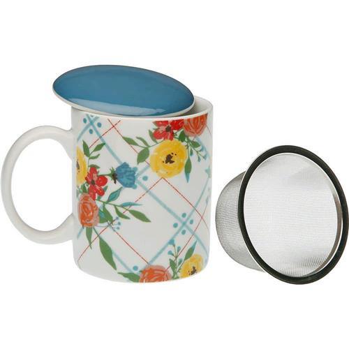 【VERSA】附蓋濾茶馬克杯(復古花300ml)