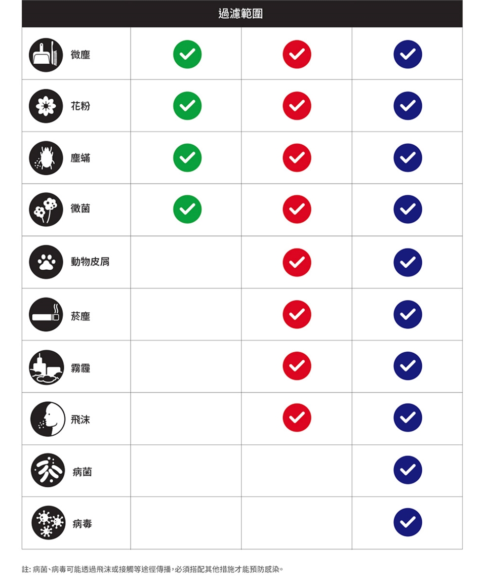 ◆適用家中有嬰幼兒或過敏者環境,主要針對病菌、病毒過濾使用。