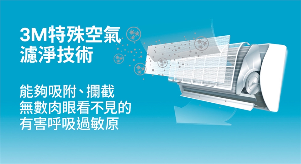 ◆PM2.5過濾效果達97%。空氣過濾能力較一般冷暖空調內附尼龍隔塵網高90倍。