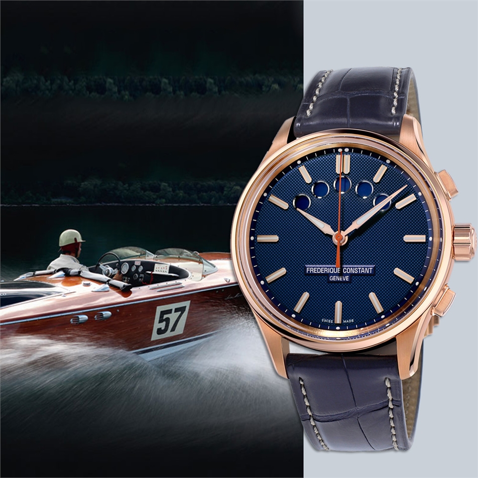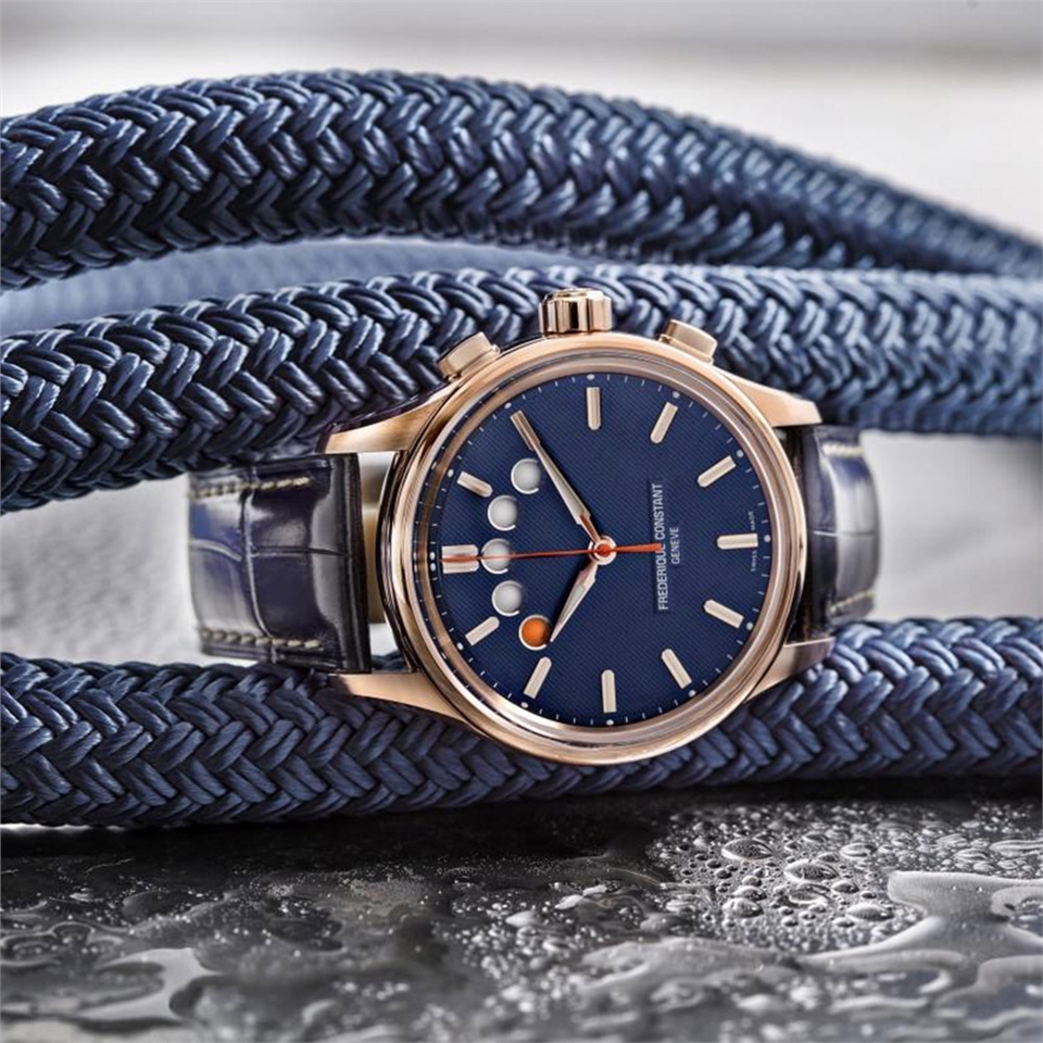 康斯登(Frederique Constant)為此項功能的先驅者之一,早在1997年便推出首款倒數計時碼錶,透過簡便功能操作配合面盤上的圓點設計,達到帆船賽事的需求。如今康斯登重新推出全新的腕錶,同樣的功能操作換上優雅的面貌,重新詮釋品牌對於帆船賽事的熱情。