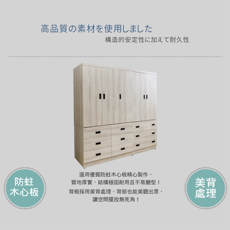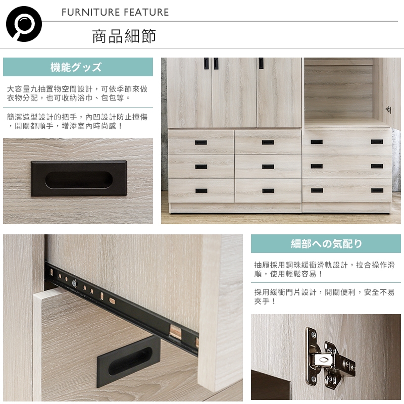 共九抽大容量收納空間設計,讓您輕鬆收納衣物及各種臥室小物!