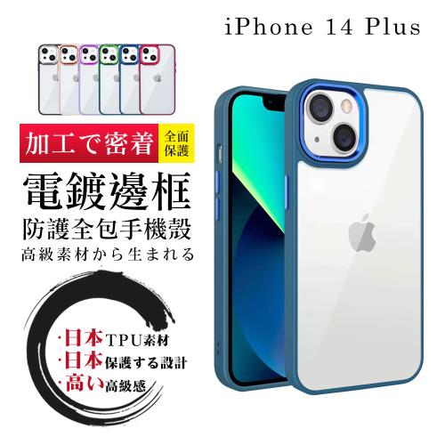 IPhone 14 PLUS 手機殼 6.7吋 防摔加厚第二代邊框電鍍版手機保護殼保護套