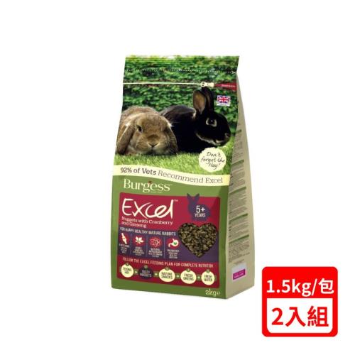 Burgess Excel伯爵-機能性小動物飼料-老兔專用(蔓越莓&人蔘)1.5kg X2包組(EN115961)(下標數量2+贈神仙磚)