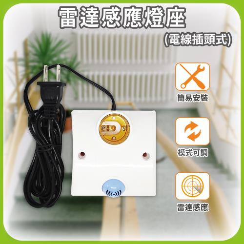 【明沛】雷達感應燈座-電線插頭型(模式可調-雷達感應 無死角-MP2653)
