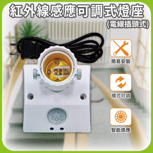 【明沛】紅外線感應可調式燈座-電線插頭設計(免拉線 即插即用-模式可調-紅外線感應 人到即亮-MP8068)