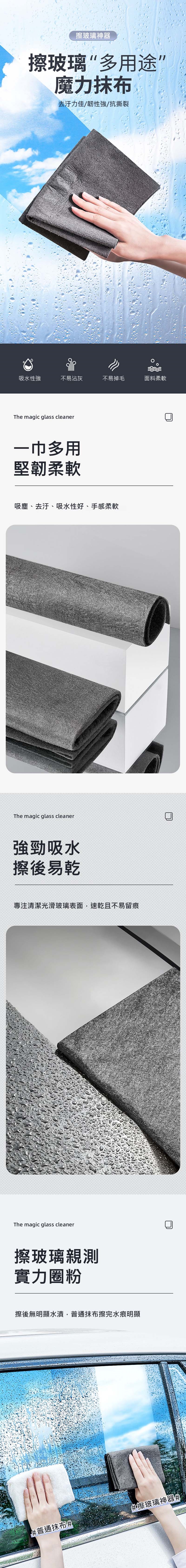 清潔光滑玻璃表面,速乾不易留痕